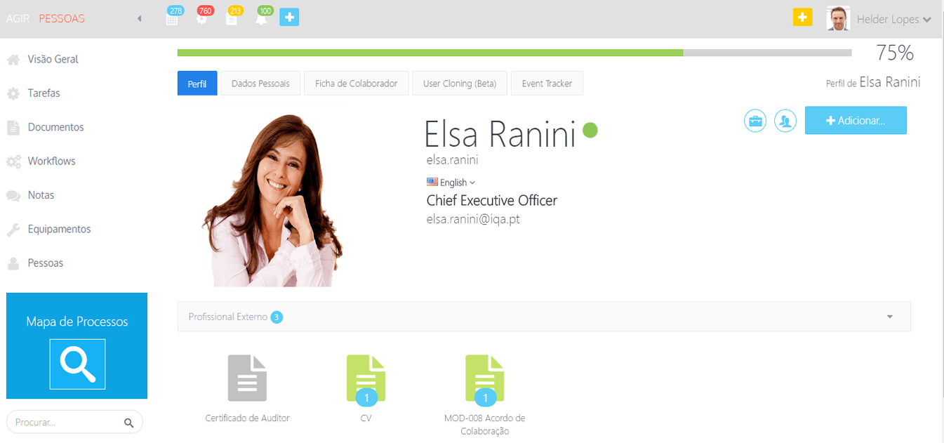 Gestão Comercial, Gestão de Reclamações, Gestão de Não Conformidades e Ocorrências, Gestão de Contratos, Gestão Financeira (despesas e outros processos), Gestão de Recursos Humanos, Gestão de Planos e Projetos, Gestão de Notas Internas, Ações Corretivas, Sugestões, Comunicações Internas, Reuniões e muito mais processos definidos por si.